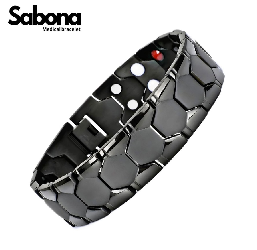 سوار سابونا الطبي بحجر الجرامنيوم للتخلص من الشحنات الكهربائيه في الجسم و تنشيط الدورة الدموية و تقليل تراكم حمض الخليك داخل العضلات المسبب للاجهاد و التعب و بالإضافة إلى تقليل ألم العظام عن طريق تنظيم الشحنات الكهربائيه يحتوي علي أربع انواع من الأحجار